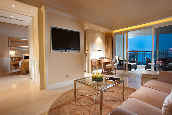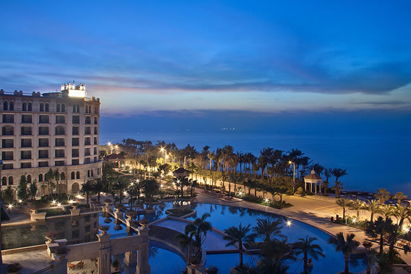 三亞財(cái)富海灣大酒店位于風(fēng)景優(yōu)美的三亞灣臨海一線黃金海景地段,酒店緊鄰規(guī)劃中的三亞新城,北鄰三亞市鳳凰國際機(jī)場約4公里,西距天涯海角風(fēng)景度假區(qū)約8公里,南與三亞灣西島——玳瑁島隔海相望,并與三亞市機(jī)場、旅游區(qū)共同構(gòu)成大會(huì)議旅游度假圈,是理想的度假休閑、商務(wù)會(huì)議之地。酒店占地約5.5萬平米,建筑面積逾9萬平米,共391套豪華酒店房(含頂級(jí)總統(tǒng)套),83套族系公館, 3套頂級(jí)獨(dú)棟別墅。酒店結(jié)合三亞當(dāng)?shù)貧夂蚝惋L(fēng)俗,遵循財(cái)富聯(lián)合集團(tuán)“高端精品”產(chǎn)品定位,邀請(qǐng)國際著名設(shè)計(jì)公司運(yùn)用國際上最先進(jìn)的設(shè)計(jì)理念,按照白金五星級(jí)酒店標(biāo)準(zhǔn)興建,具有濃厚的熱帶風(fēng)情。景觀設(shè)計(jì)采用了法國現(xiàn)代古典主義風(fēng)格,突出洛可可的華麗與奢華。酒店特設(shè)三亞罕見的2000平米豪華迎賓大堂,步入其中便能立刻感覺到如盛宴現(xiàn)場般的奢華感受。酒店擁有高檔中、西餐廳,韓式料理餐廳,及提供各式美酒、鮮榨果汁、茶點(diǎn)和健康小吃的特色酒吧、大堂吧,讓賓客充分感受熱帶的氛圍;完善的酒店獨(dú)享沙灘、健身娛樂設(shè)施、及酒店SPA所提供的泰式等各式愜意自在的按摩,將使您充分享受所有的三亞時(shí)光,難以忘懷。同時(shí),三亞頂級(jí)的會(huì)議廳,及專業(yè)團(tuán)隊(duì)將為您提供一站式會(huì)務(wù)服務(wù)。會(huì)議廳內(nèi)部設(shè)施齊全,功能完善,是舉辦商務(wù)會(huì)議的理想之選。酒店還擁有可容納380人的豪華宴會(huì)廳—國王宴會(huì)廳,是為財(cái)富領(lǐng)袖量身定制的專屬配置,無論是頂級(jí)規(guī)格的私人聚會(huì),還是層峰匯聚的商務(wù)晚宴,都能在此得到完美呈現(xiàn)。